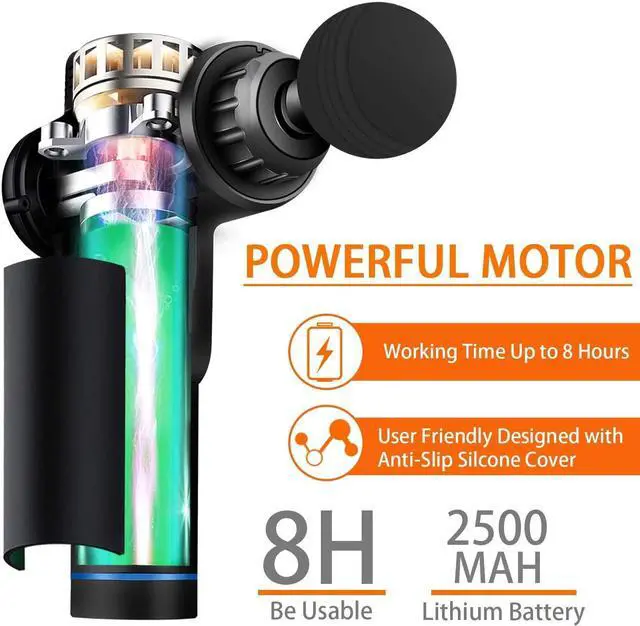LONG WORKING TIME: The powerful muscle therapy massager gun is equipped with 2500mAh high-quality lithium battery, so it can keep working about 8 hours after full charge. Long enough for you to have a wonderful full body massage
