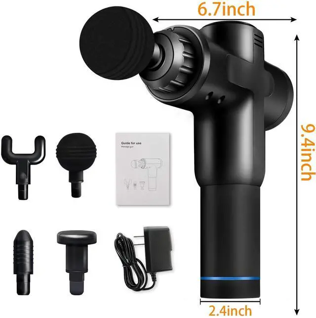Package Includes: -Professional Massage Gun -4 Quick Massage Heads -Orginal 7.4V Wall Adapter -Instruction Manual -Delicate Package case