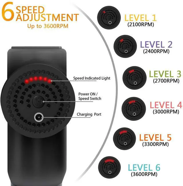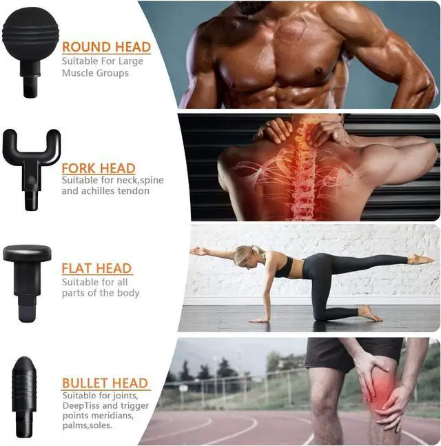 MASSAGE ADAPTERS & MULTI SPEEDS: Comes with 4 different heads to aid in sore muscle relief, this percussive deep muscle gun massager provide targeted treatment for every muscle group. Different massage heads and speed level provide a relaxing massage experience and match your various needs Multi speeds powerful deep tissue muscle massage gun: Excellent gift choice for Father, Mother, Wife, Husband, Family and Friends as birthday, anniversary, Christmas and New Year gift.