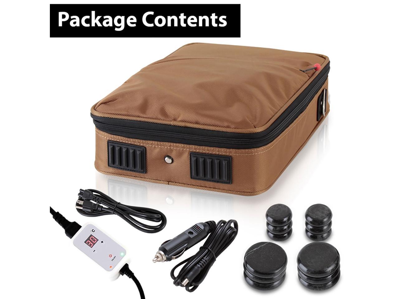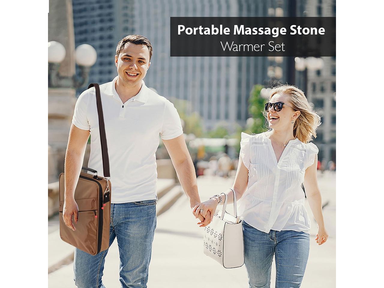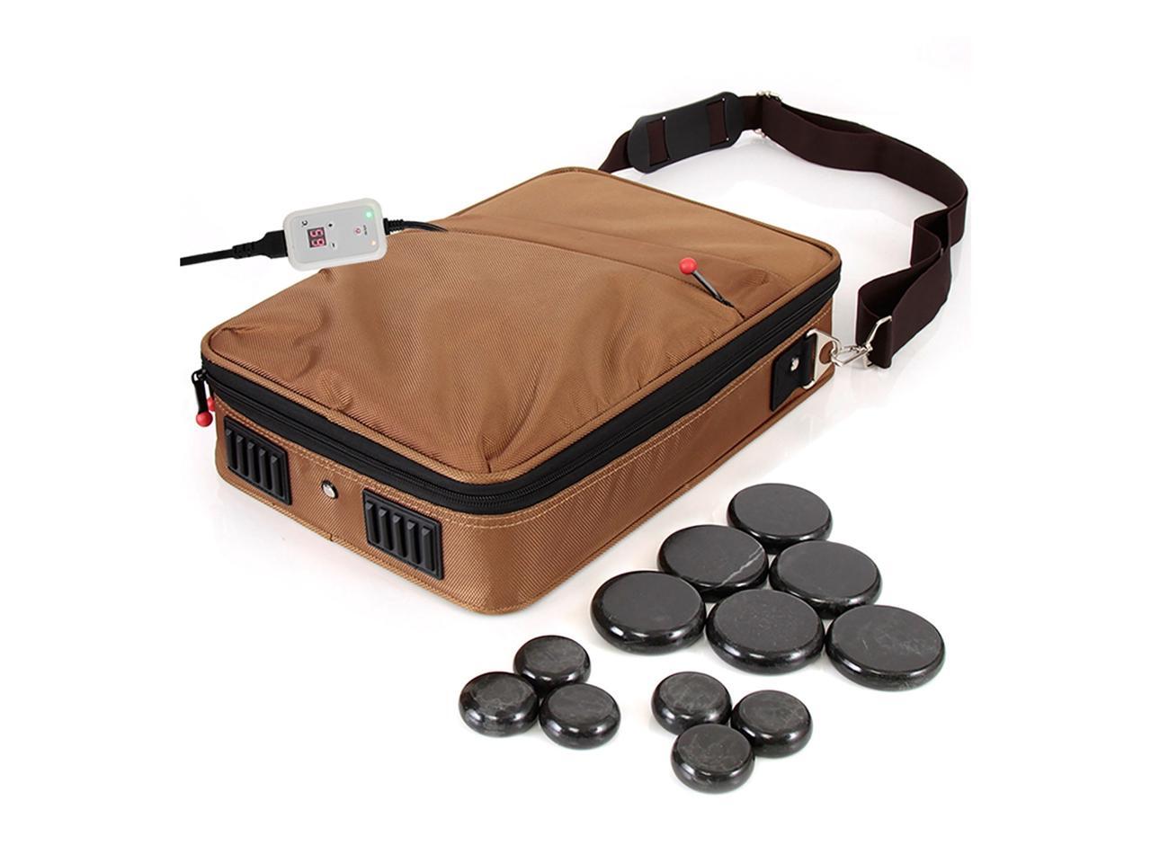 SereneLife Portable Hot Stone Massage Warmer Set & Spa Kit with 12 Round Stones