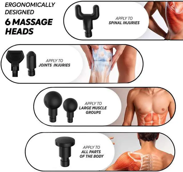6 different shapes of massage heads: According to different muscle groups and trigger points, 6 kinds of customized massage heads can be customized to meet various massage needs.