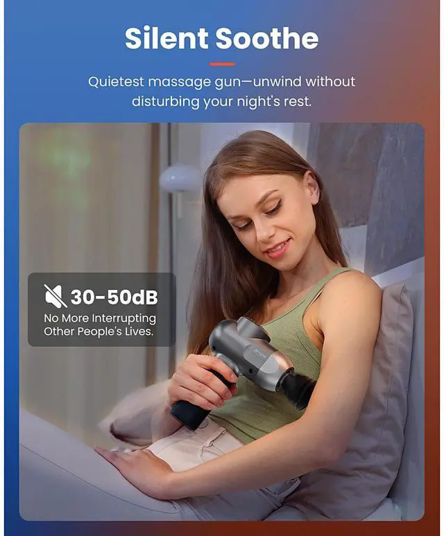 5. Relax Peacefully at Home or the Office with 40dB Whisper-Quiet Tech: Quieter than a library whisper, this deep tissue massage gun lets you recover during a desk lunch break, late-night wind-down, or early morning session without waking anyone or distracting coworkers. An intelligent chipset with 10-minute auto shut-off prevents muscle overuse, so even first-time users can relax without worry.