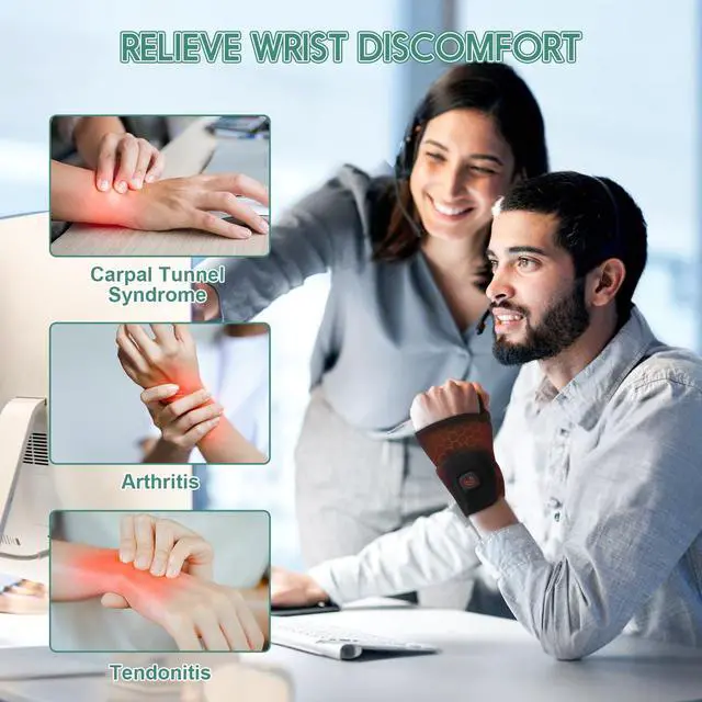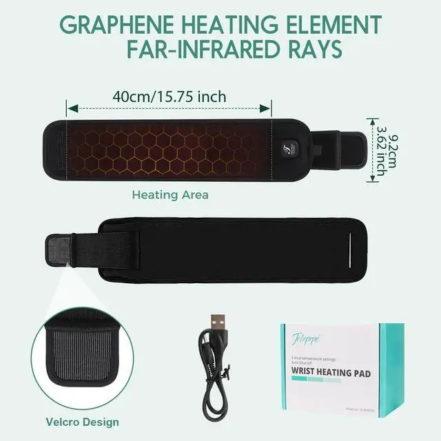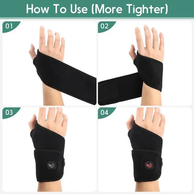 Telepepe Heating Wrist Hand Wrap Brace, 3 Heat Levels Cordless Carpal Tunnel Relief Heating Pad(Black)