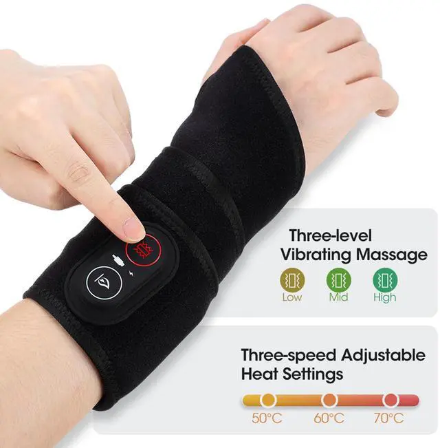 Cordless Wrist Heating Pad with 3 heat settings and vibration modes for arthritis, sprained hand, tendinitis, Carpel Tunnel, etc