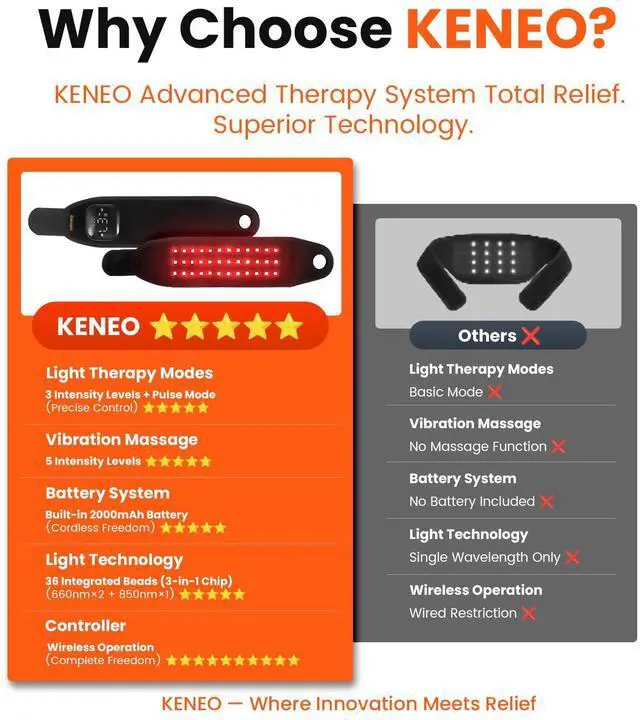 - Dual Light Therapy: Soothes pain & reduces inflammation.