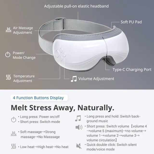 - What’s in box : An eye massager, a type-C USB cable (no plug), and a user manual.