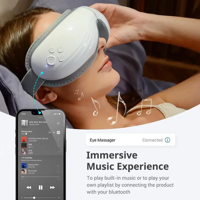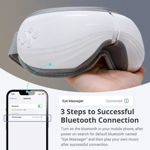 After power on, blue-tooth of eye massager is on by default. If you'd like to link it, please turn on the blue-tooth of your mobile and search for the default named “ Eye Massager”. It'll play your mobile music after successful connection. After it’s disconnected, it will play the default music.
