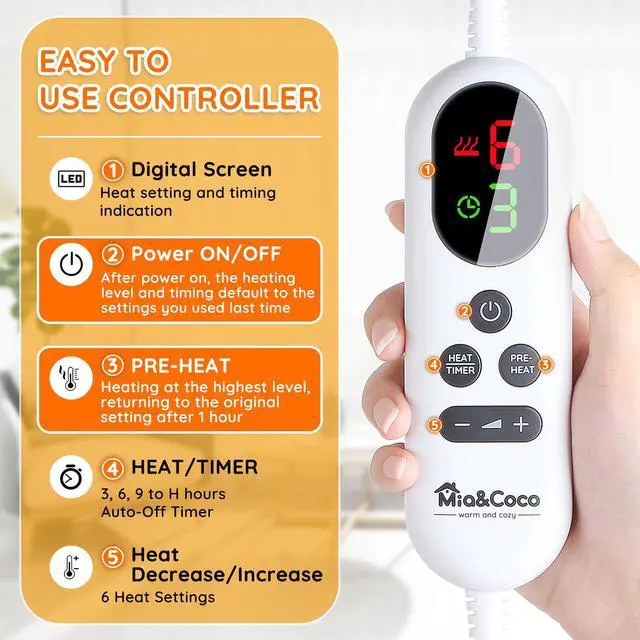 5 Machine Washable & Easy to Maintain - Simply detach the controller and wash the pad by hand or machine as needed. Great for daily family use always fresh and ready.