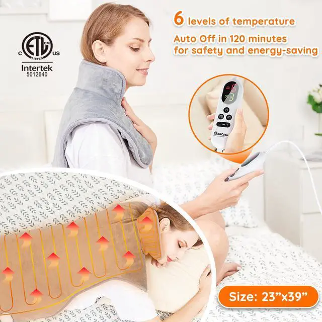 Mia&Coco Electric Heating Pad for Back Neck Shoulders Pain Relief, XL 23"x39" Soft Flannel Wrap, Waist Strap, Fast Heat Hot Therapy 6 Heat Settings, Auto-Off Timer, Machine Washable, Grey