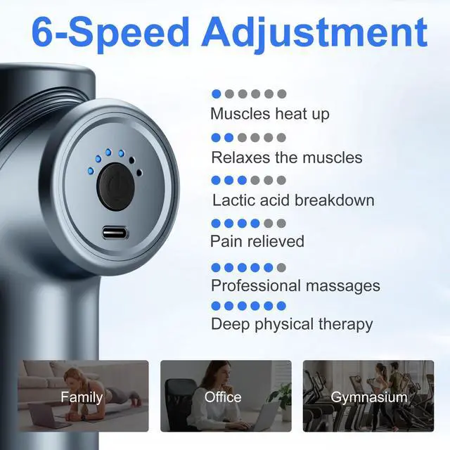 Post-Workout Recovery & Daily Relaxation: Using our deep tissue massage gun after exercise helps speed up lactic acid metabolism, eases muscle soreness and fatigue, and shortens recovery time. Daily use relieves muscle tension, reduces stiffness, and boosts comfort during work or study.