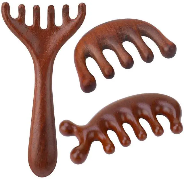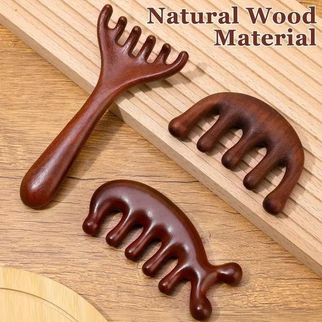 3 Pcs Wooden Head Scalp Massager Comb, Head Massage Tool for Relaxation Hair Gua Sha Comb for Mother, Gaughter, Wife