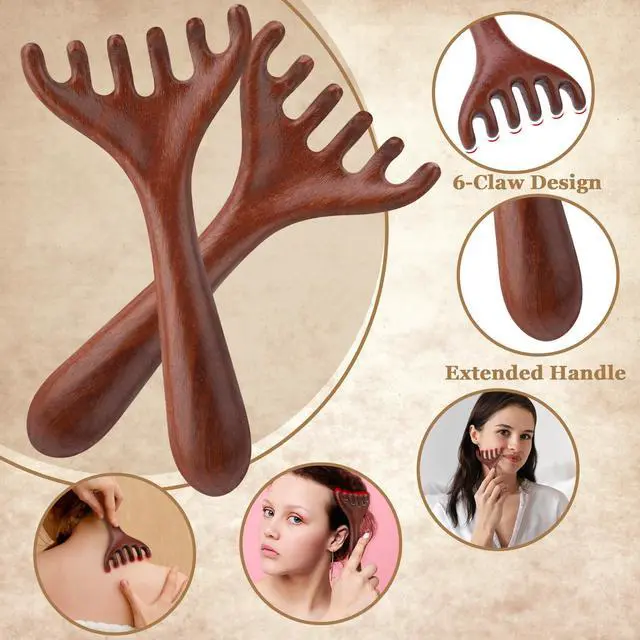 Wooden massage comb: Our head massage comb is made of sandalwood and emits a slight fragrance. The surface of the comb is polished and very round and smooth, and will not scratch the skin