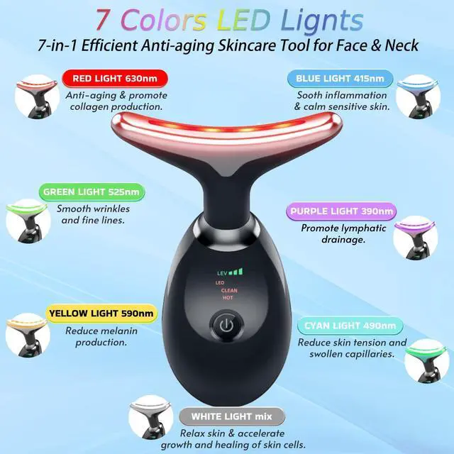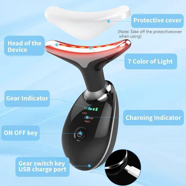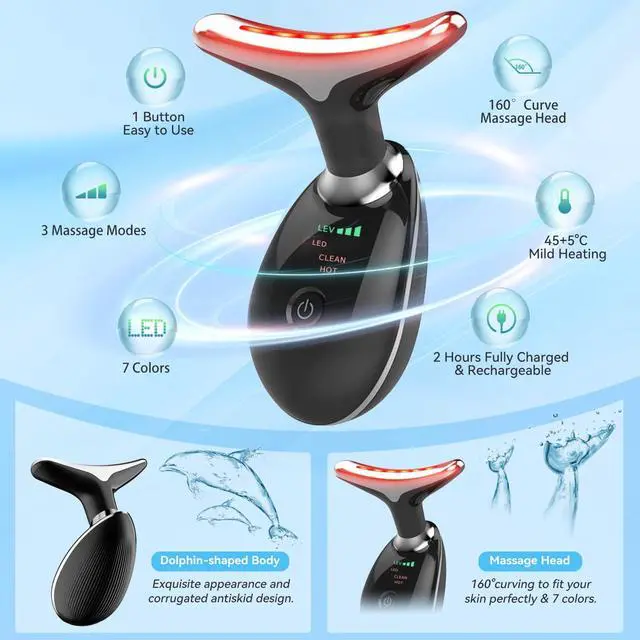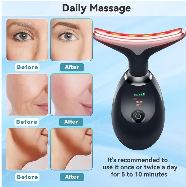 7-in-1 Daily CareThis face neck massager is equipped with 7 colors and 3 massage modes that are suitable for massaging the face and neck. Fully meet your diverse care needs. More eIstc and smther, and mntns a heIthy and rdnt compIxin, double chn reducer.