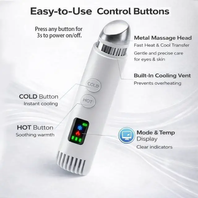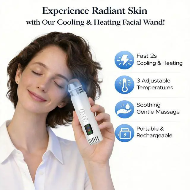 2-in-1 Cold & Warm Depuffing Wand for Face & Eyes, Adjustable Temperature Facial Massager with Cooling & Gentle Heat, Portable Skincare Tool for Puffiness, Dark Circles & Radiant-Looking Skin