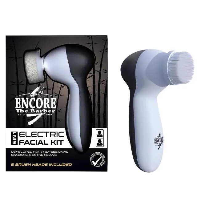 Electric Facial Kit - Waterproof Cleansing Spin Brush Set with 5 Exfoliating Brush Heads - Cleanser - Rotating Spa Massage - Gentle Exfoliation and Deep Scrub Skin Care Barbers & Aestheticians