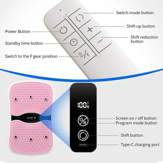 • Intelligent Control: The vibration plate can be controlled via a remote control and an LED display. The remote control allows for remote operation, enabling users to adjust workout intensity without bending over. The LED display shows the time and speed, keeping you informed of your workout progress at all times.