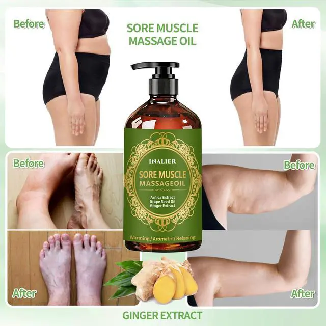 Sore Muscle Massage Oil: This massage oil combines arnica and ginger oil to help relax sore muscles and support lymphatic drainage, while nourishing plant oils provide deep hydration. Lightweight, non-greasy, and easily absorbed, its soothing aroma enhances relaxation, making it a perfect addition to your daily body care routine.