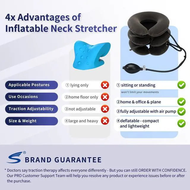 Just use 2-3 times a day and 5-20 minutes per session, S inflatable neck decompression stretcher can alleviate pains caused by: