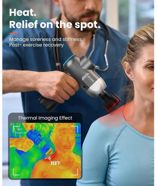 SOOTHING HEAT THERAPY & INSTANT RELIEF: Experience game-changing recovery with our specialized heated head that warms up quickly to melt away tension. Unlike standard massagers, the combination of heat and percussion penetrates deep to loosen stiff knots, alleviate everyday neck stiffness, and accelerate recovery after workouts.