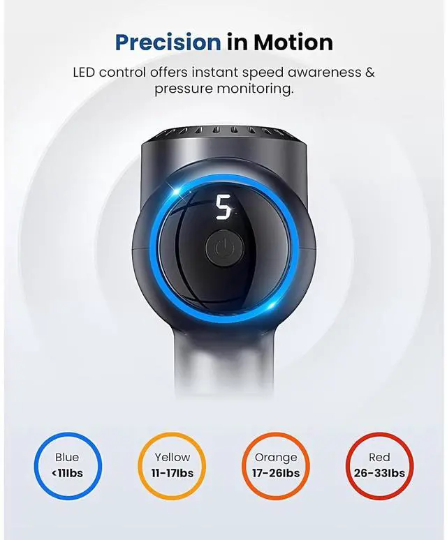 INTELLIGENT 5 SPEEDS & VISUAL DISPLAY: Take control of your recovery. The clear LED panel visualizes your pressure with a Force Meter and lets you cycle through 5 scientifically calibrated speeds (2000-3200 RPM). Whether you need gentle relief for sensitive areas or intense power for athletic recovery, the C2 Plus adapts to your needs.
