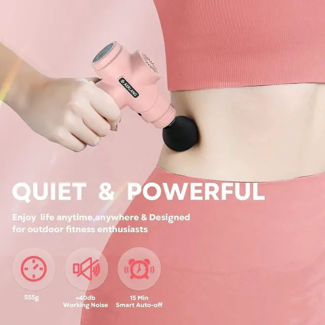 The mini massage gun It's compact and 555g, and can be put into your carry-on bag, so it's convenient to carry around and massage your waist and calves after a day's running outside