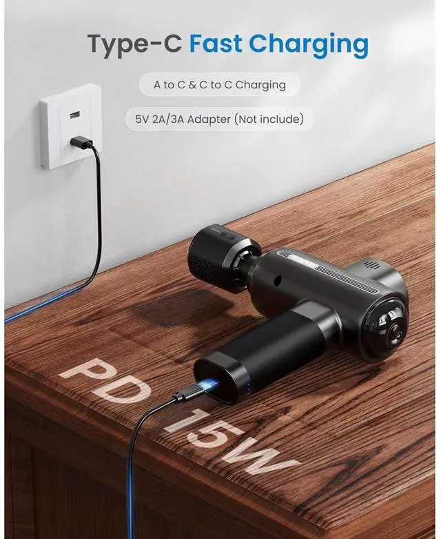 ULTRA-FAST CHARGING & LONG BATTERY LIFE: 15W PD charging (1.52 hours) keeps the long-lasting back massager ready for weekend trips, tournaments, or camping. Battery lasts multiple sessionsno dead battery mid-use like typical 4+ hour chargers.