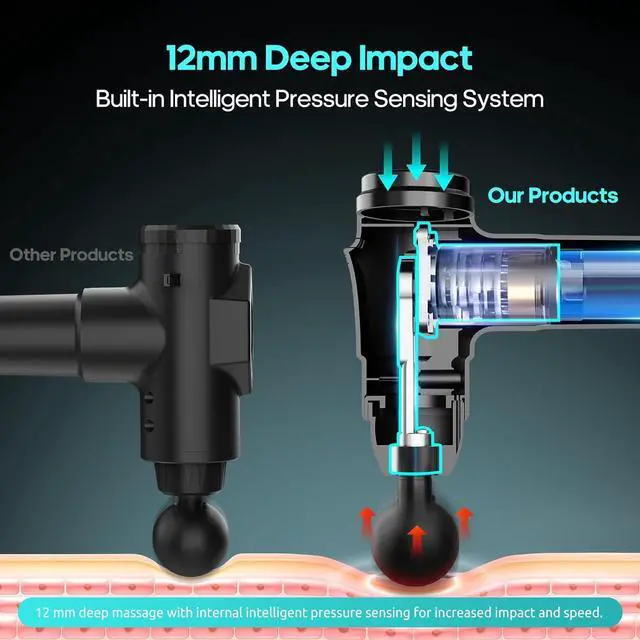 New Generation Massage Gun Deep Tissue: The hand held massage gun utilizes a on-screen display, allowing for easy control and monitoring of the massage experience. it adjusts to your needs, providing a customized deep tissue percussion massage