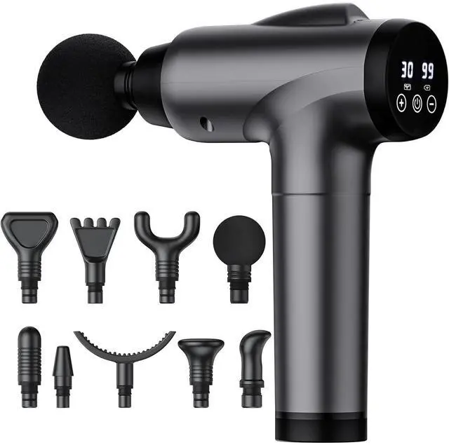 9 Massage Heads & 30-speed Levels: Our muscle massager gun boasts 9 massage heads and 30-speed levels to target various massage groups, including options for deep tissue. Ideal for use in your legs, arms, back, torso and neck.
