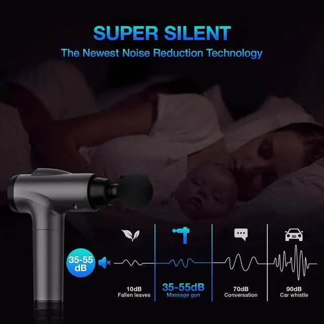Powerful & Quiet: You can actually use this portable massage gun in the airport, at the gym, in the hotel lobby, or in your office without pissing off your colleagues or the bystanders because this massager doesnt sound like a drilling machine.