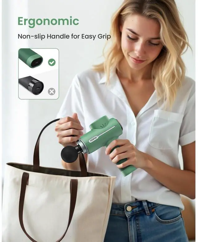 Ergonomic Non-Slip Handle: The ergonomic non-slip handle makes percussion massage gun easy to grip. Its quiet operation makes it suitable for home, gym, or office settings. Additionally, the preset 10-minute auto-off feature prevents prolonged usage