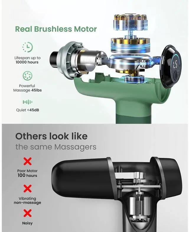 Powerful Muscle Massage Gun: This deep tissue massage gun features a premium metal housing and a high-torque brushless motor, providing high penetration and an exquisite sports massage experience