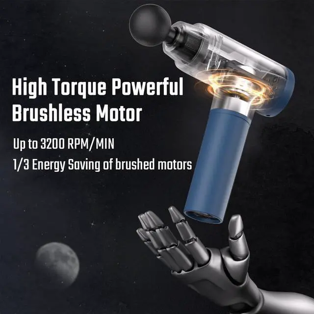 USB Fast-Charging & Long-life Battery The deep tissue massage gun equipped with a 2000mAh Lithium battery, which can be continuously run for 6 hours through the brushless high-torque motor. The massager gun comes with a a USB Type C fast charging cable, so you can bring it and charge it anywhere.