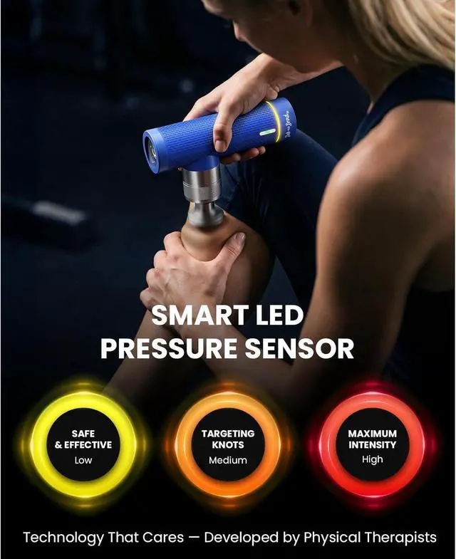 Smart Pressure Sensor & FSA/HSA Eligible LED pressure sensor visually guides your massage intensity: YELLOW (optimal), ORANGE (caution), RED (too much pressure). Developed with physical therapists Bob & Brad for safe, effective use by everyone from office workers to athletes. As an FSA and HSA eligible device, it's more than a toolit's a smart, reimbursable investment in lasting pain relief and faster recovery