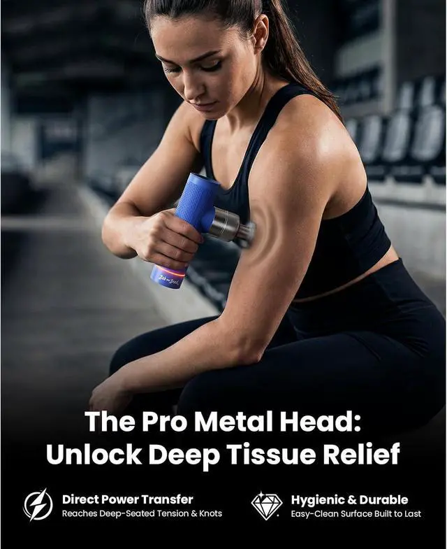 Professional Deep Tissue with Metal Head | Targets Tough KnotsThis deep tissue massage gun features a high-density metal massage head for precision relief, directing powerful vibration energy deep into muscle layers. Effectively penetrates surface tissue to locate and release stubborn trigger points and adhesions from exercise or sittingreaching areas foam rollers can't. A true professional percussion massage gun for serious muscle recovery