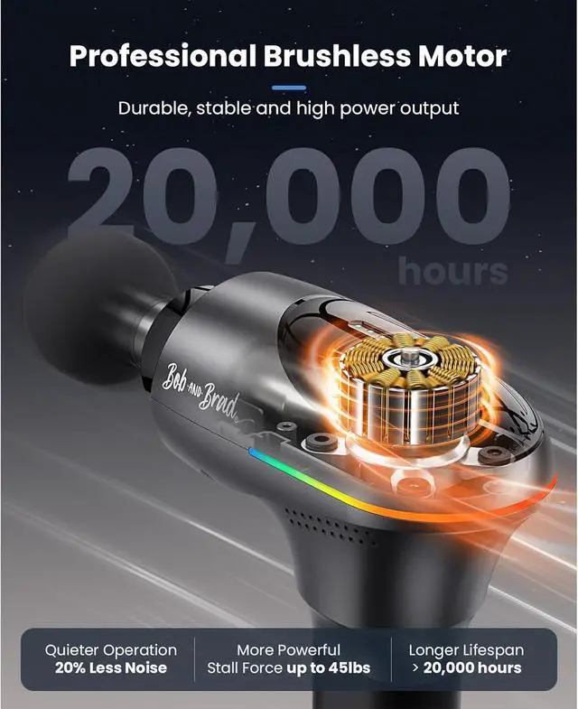 Developed in the US by Physical Therapists: Package includes BOB AND BRAD massage gun, 5 reinvented massage heads, carrying case, USB-C charging cable, user manual, beautiful packaging. Whether for yourself or someone special, this massage gun is a perfect relief companion.
