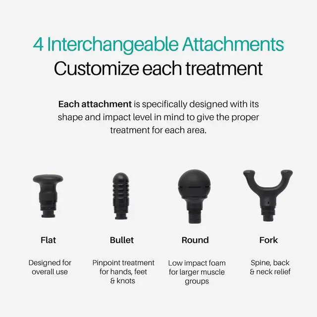 4 Locking Attachments: The B37v2 features 4 interchangeable attachments including a new silicone ball. This deep tissue massager targets different muscle groups, providing customized relief and muscle activation.