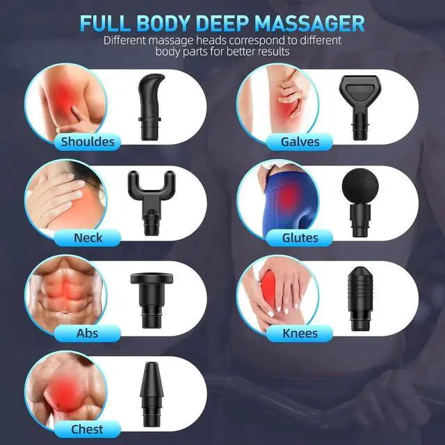 Long Battery Life and Rechargeable: Massage gun with long-lasting battery performance solve the problem of battery life. They ensure extended usage without the need for frequent charging.