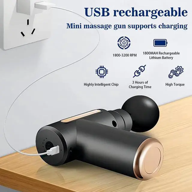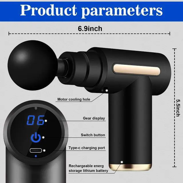 Massage Gun - Deep Tissue, Mini, Portable, 4 Heads, 6 Speeds, Pain Relief, Whole Body