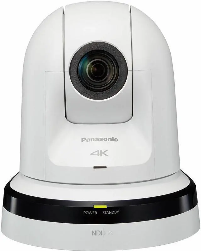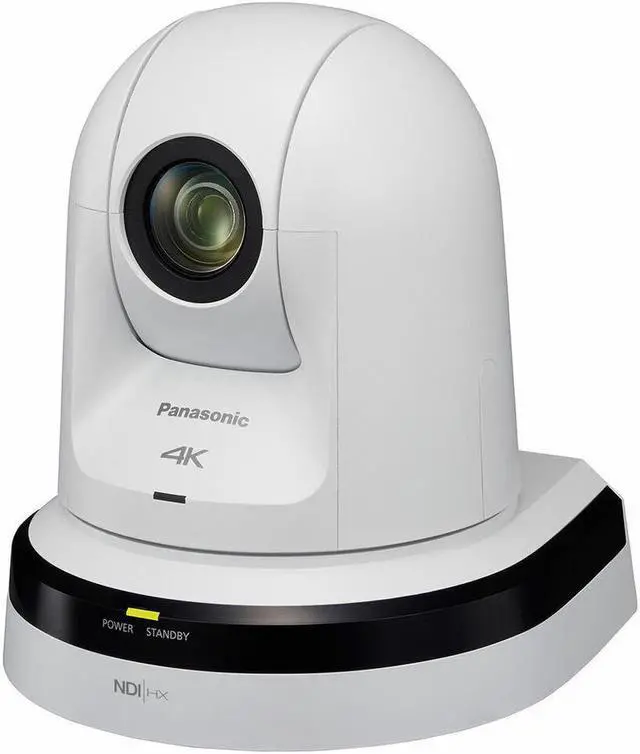 The white Panasonic 20x Zoom 4K PTZ Camera with 3G/HD/SD-SDI & HDMI Output and NDI Output 4K UHD, HD, and SD video over a variety of connections. It features a 1/ 2.3" 3MOS sensor and outputs over 3G/HD/SD-SDI, HDMI, or you can use the NDI protocol to stream video and audio, control (IP), tally, and power over a single Ethernet cable. When connected to the Internet, this IP camera allows you to control PTZ actions and monitor the surveillance area from a remote location via a Web browser. This provides you with several advantages like reduced integration costs, easy remote production and engineering, and lower cost for multiple location systems.