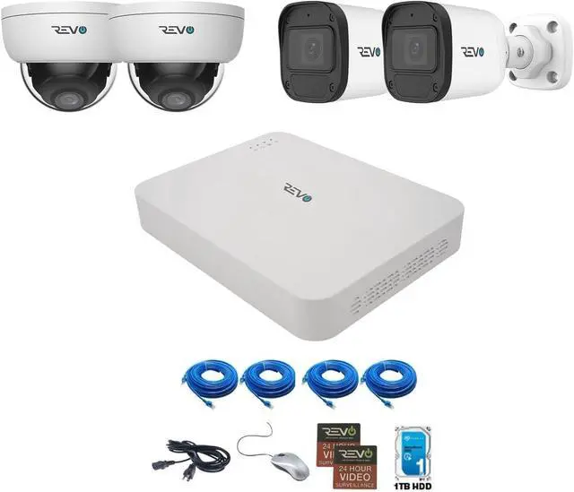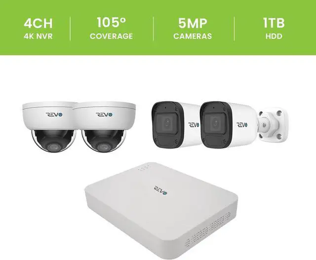 COMPLETE SYSTEM: 4-channel 4K NVR security system includes 4 high-resolution 5 Megapixel cameras, 1TB hard drive, and four 60ft CAT5e cables