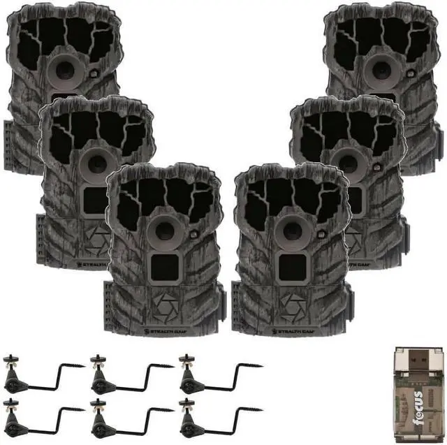 • Bundle Includes: 2 x Stealth Cam Browtine 14MP Camera (3-Pack), 6 x HME Products Economy Trail Camera Holder, 6 x 32GB Ultra SDHC UHS-I Memory Card, Focus All-In-One High-Speed USB 2.0 Card Reader