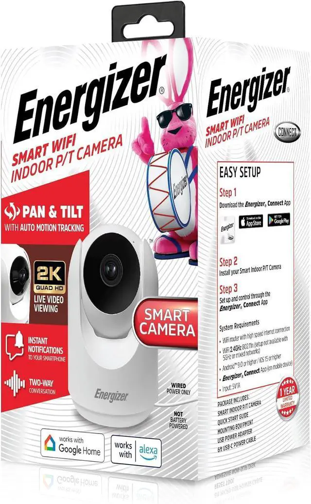 Pan & Tilt with Full Coverage: The Energizer Smart 2K Indoor Camera offers 355-degree horizontal and 48-degree vertical pan and tilt capabilities, ensuring comprehensive coverage of your indoor space. With this wide range of motion, you can easily monitor every corner of a room, providing a greater sense of security and control.