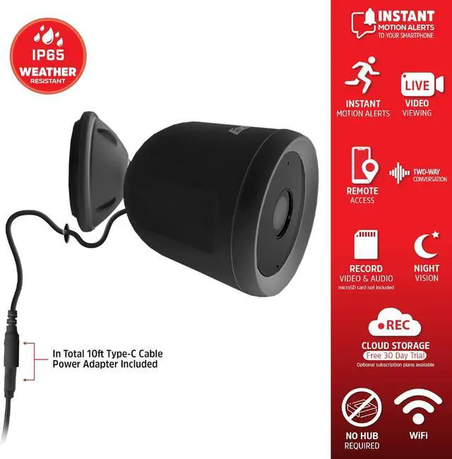 Reliable Power and Storage Connectivity: Stay worry-free with a continuous power source provided by the 10 ft power adapter. Enjoy flexible storage options, including a complimentary 30-day cloud storage trial or the choice to use a micro SD card (up to 128GB, not included) for local recording. Connect effortlessly to your 2.4GHz Wi-Fi network, the most common frequency, while not supporting 5GHz Wi-Fi networks.