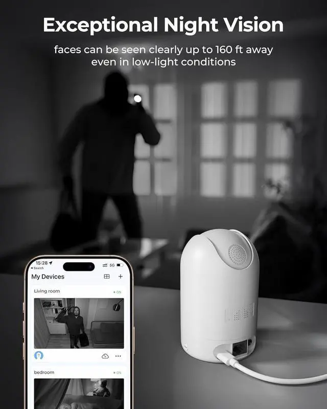 4MP/2K Resolution Ultra HD Image Quality: Unlike 1080P oR 720P, 4MP/2K wifi home security camera can help offer more colorful & clearer details to you. Your baby/pet/families or stranger will be shown as youre right in the place. 13 Powerful IR lights allows us to get clear views even in the dark.