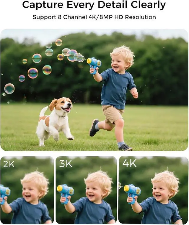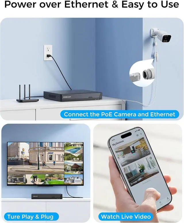 Easy PoE Setup Works OfflineSeamless Plug & Play Setup: Enjoy effortless installation with our Power over Ethernet (PoE) system, which uses a single Ethernet cable for both power and data. The integrated IP, TCP, UDP, SMTP, DHCP, and RTSP functionalities enable standalone operation without needing constant internet connectivity. Supports up to 8 cameras simultaneously for superior security coverage.