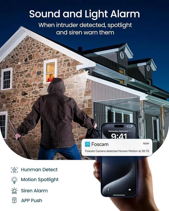 Enhanced Color Night VisionCapture vivid and colorful images even in low-light conditions with 4 IR-LED. Whether it's rain, snow, or extreme temperatures, Foscam outdoor camera's IP66 waterproof rating ensures reliable performance.