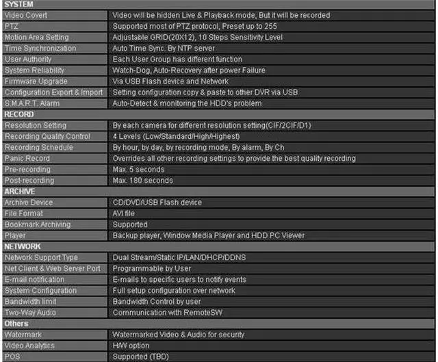 •Alarm in/Motion Detection/Video Loss/HDD SMART