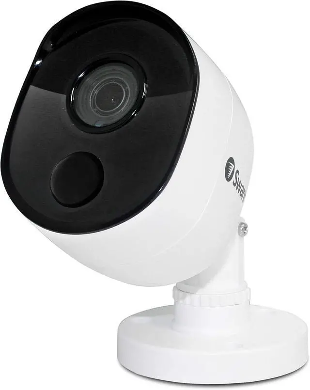 This 1080p Audio/Video Security Camera (camara de seguridad) features Swann's true detect PIR thermal sensing technology to reliably detect heat-generating moving objects, such as people, large pets and cars. With more accurate motion detection you have more reliable notifications and recording, eliminating false triggers such as falling leaves, bugs, rain and more, saving you hard drive space and playback time. Combine with a DVR to see and hear what's happening, thanks to the camera's powerful built-in microphone. The sturdy polycarbonate camera construction is weatherproof and can be used both outdoors and indoors. See in the dark up to 100ft with the cameras powerful infrared night vision. The cctv camera security system comes with a roll of 60ft BNC cable to connect it to the DVR. Its Bullet shape makes it more visible for potential intruders, working as a deterrent to protect your property and loved ones, in addition to the theft deterrent stickers included in the pack. If you prefer discreet cameras that blend in into its surroundings, you may consider its Dome shaped sister pro-1080msd. This full HD 1080P, or 2 megapixels, security camera is the perfect addition to your dvr-4575, dvr-4780, dvr-4980 and others when you need extra cameras.