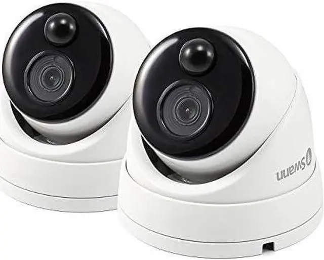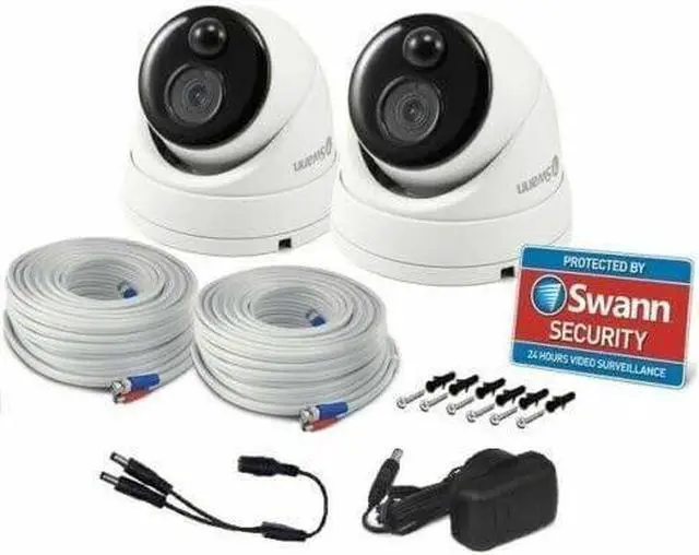 PRO-1080MSD Thermal-Sensing Security Camera Video Quality: 1080p (1920 x 1080 pixels) Viewing Angle: 85° Night Vision Distance: Up to 100ft/30m (Black & White) / 32ft/10m (Color with Sensor Warning Light) PIR Thermal / Motion Sensor: Yes, True Detect PIR Sensor Range: Up to 32ft / 10m Indoor / Outdoor: Indoor or Outdoor IP Rating: IP66 Microphone: No Operating Temperature: -22ºF to 131ºF / -30ºC to 50ºC Dimensions: 3.94" x 3.94" / 100mm x 100mm Package includes 2 PRO-1080msd dome cameras, 1 power supply, 1 power splitter, 2 60' BNC Cables