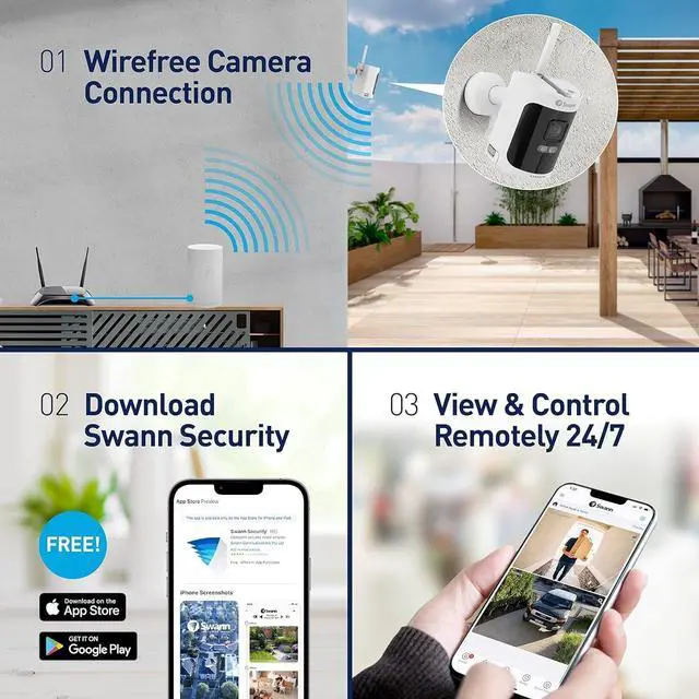 2K Wire-Free HD resolution video transmitted wirelessly with SwannNet for the best available Wi-Fi connection for each camera